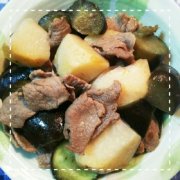 だしの素で簡単!里芋となすと豚肉の煮物