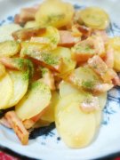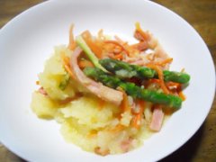 アスパラとベーコン炒めジャガ芋ソースかけ