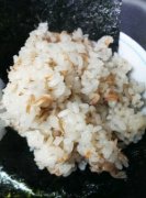 栄養満点!コクと深い香り「くるみごはん」 くるみを磨り潰し、白米に混ぜて炊いた「くるみごはん」です。おむすびにしてお弁当にするのが、我が家流です。 栄養満点!コクと...