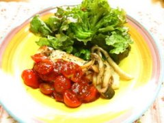 むね肉のトマトソース むね肉しっとりウマウマです! むね肉のトマトソース むね肉 塩こしょうにんにくチューブ 付け合せの野菜レタスやきのこ トマト ケチャップ 醤油 黒こしょ...