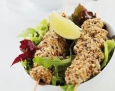 デュカチキンの串焼き デュカはエジプト発祥のミックススパイス。ブラウン マルチクイックならしっかりきざめます。 デュカチキンの串焼き 鶏ムネ肉 塩、黒こしょう サラダ用野...