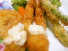 海老フライ 新玉葱とアスパラ 海老と新玉葱とアスパラのフライをタルタルソーで、、ご参照に 海老フライ 新玉葱とアスパラ 海老 新玉葱 アスパラ 玉葱みじん切り 卵 マヨネーズ...