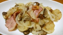 じゃがいもとベーコンのにんにく黒胡椒炒め