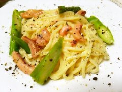 イカの塩辛とアスパラの生クリームパスタ♡ 生クリームで濃厚(*^_^*)わざわざイカの塩辛を買いたくなるくらいハマってしまう味ですw。 材料 (2人分) パスタ 200g アスパラガス...