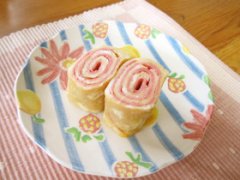 ピンクが可愛い♪ハムくるくる卵焼き