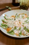 ホワイトアスパラガスの茹で&ソテー 茹でたホワイトアスパラガスの上に、焼いたホワイトアスパラガスを乗せ、2種の味を同時に味わいます 材料 (2人分) ホワイトアスパラガス...