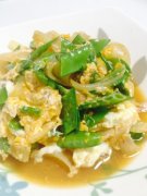 シャキッ絹さやとしんなり玉ねぎの卵とじ