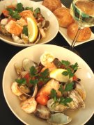 鮭のワイン蒸し アサリとエビも 簡単手抜きでも豪華に見えちゃいます。フライパン1つで手軽に。 鮭のワイン蒸し アサリとエビも 鮭 アサリ エビ プチトマト にんにく 白ワイン...