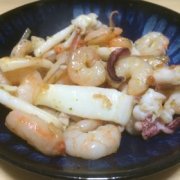 ☆イカとエビのアヒージョ風 柚子胡椒炒め