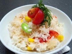 プチトマトと枝豆とコーンの炊き込みご飯