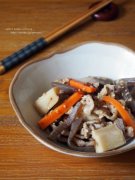 簡単和食に根菜と蒟蒻とタケノコのおかか煮