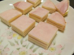 ハムとチーズのミルフィーユお弁当編 お弁当の隙間が開いちゃった時に火を使わずにささっと作れて便利です。 材料 ハム 4枚 スライスチーズ(溶けない) 3枚 1 一番下にハムを敷...