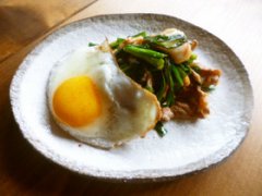 スタミナ☆キムチ炒め♪ 卵黄を潰して絡めて食べてね(^^) スタミナ☆キムチ炒め♪ 豚こま肉 塩コショウ ニラ 白菜キムチ ゴマ油 麺つゆ 目玉焼き 材料 (2人分) 豚こま肉 100...
