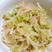 ヘルシー♪もやしときゃべつのごま和え。