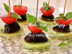 プルーン&キウイ☆ピンチョス プルーンの自然の甘みがキウイとトマトとバジル風味ドレッシングの酸味に絶妙にマッチング☆とっても美味しいです♪ プルーン&キウイ☆ピンチ...