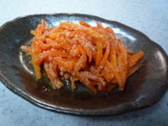 超簡単♪千切りにんじんのタラコ和え 市販のパスタソースの「生タイプたらこ」を使って簡単おつまみ♪たらこクリームとかクリーム系じゃないほうがいいです。おいしい 超簡単...