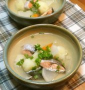 塩ジャケの尻尾de三平汁