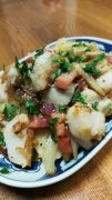 里芋とベーコンのジャーマンポテト風♪ 茹でた里芋とベーコン、玉葱、にんにくをオリーブオイルで炒め、ジャーマンポテト風に仕上げました♡ 里芋とベーコンのジャーマンポテ...