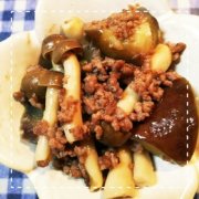 野菜2つだけ!なすとしめじの挽肉甘酢炒め
