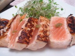 サーモンの炙り風 ゆず胡椒添え サーモンをフライパンでさっと焼いてゆず胡椒のソースでいただきました サーモンの炙り風 ゆず胡椒添え サーモン オリーブオイル にんにく ゆず...