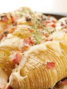 ハッセルバックポテトチーズ こんがり香ばしい~♪アツアツが美味しい♥ ベーコン・Wチーズのトッピングパーティー等にも是非どうそ~♪ ハッセルバックポテトチーズ じゃがい...