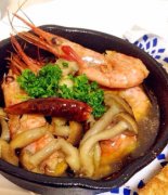 【スペイン】きのこと有頭エビのアヒージョ エビの頭から出た...