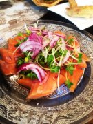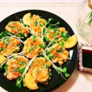 サーモン☆紫玉ねぎと貝われ大根のせ
