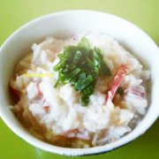 ぽっかぽか♡カニカマと白ネギのたまご粥