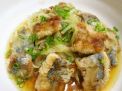 黒酢でまろやか♪さんまと玉ねぎの甘酢和え