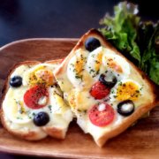 黒オリーブとトマトチーズトースト朝ごはん