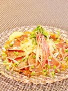 爽やか! 鰹のたたきピリ辛香味ゆかり載せ
