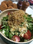 カリカリじゃこがけさっぱり豆腐サラダ 超時短シンプルレシピ de 絶品おもてなしサラダ*胡麻の香りいっぱいの香ばしカリカリじゃこと豆腐と水菜のコラボ* 材料 (3人分) 豆腐...