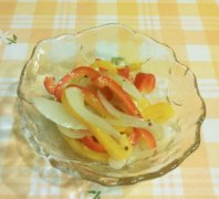 パプリカと玉ねぎのマリネ 彩り綺麗なパプリカでさっぱり口当たりの良い一品♪ パプリカと玉ねぎのマリネ パプリカ 玉ねぎ オリーブオイル 酢 蜂蜜 粒マスタード 材料 パプリカ...