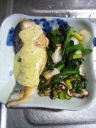 1月27日晩飯 【鰆のマスタードソース】 マスタードがいいアクセントですよ^^ 材料 サワラ 1切れ ニラ 3束 ネギ 4分の1 しいたけ 1個 ★マスタード 適量 ★ヨーグルト 少...