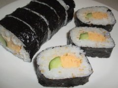 明太子の巻き寿司、残り物でおもてなし