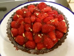 バレンタイン!苺のショコラタルト ショコラ風味の生地にカスタードクリームをのせ苺をトッピングしました!苦手な人必見?ダマにならないカスタードのレシピです! バレンタ...