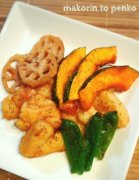 鶏むね肉と蓮根、南瓜の蒲焼き*黒胡椒かけ