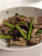 きのこ&アスパラ&ベーコンのガリバタ炒め