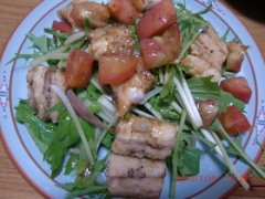あじのバルサミコソースかけ☆サラダ感覚♪ あじと野菜をたっぷり食べられる洋風なオシャレ料理! 材料 (2人) あじ(開いたもの) 3枚 ☆強力粉 適量 水菜 1束 みょうが 2...