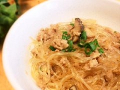 ぱぱっと!麻婆春雨 スープのしみ込んだ春雨がめちゃうま♥ ぱぱっと!麻婆春雨 白ネギ 干しシイタケ 豚ひき肉 春雨 中華スープの素 水 しょう油 砂糖 こしょう 青ネギ 材料 (4人...