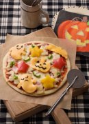 バター好き♪ハロウィン簡単フライパンピザ 発酵なし&フライパンで具材ものせて一気に焼き上げる簡単ピザです。チェダーチーズの型抜きトッピングでハロウィン気分♪ バター...