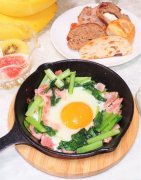 ニトスキ余熱料理 ほうれん草の半熟卵かけ