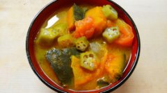 朝食♪かぼちゃとトマト オクラのお味噌汁