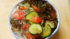 簡単♪もずくとキュウリとトマトの酢の物!