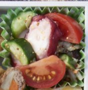 さっぱりタコ・キュウリ・トマトのマリネ 夏にうれしい、さっぱりマリネ 材料 (4人分) 水ダコ(足) 50g(およそ1本) キュウリ 1本 トマト 1個 タマネギ 1/4個 米酢 大さじ1 粒マス...