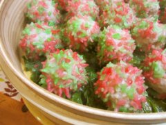 熱々で召し上がれ♪カラフルなもち米団子 柔らか~い肉団子にカラフルなもち米をトッピングしました♪ 熱々で召し上がれ♪カラフルなもち米団子 豚ひき肉 砂糖 塩コショウ 薄口...