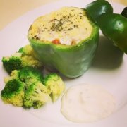 パプリカのミートソース詰め オーブン焼き パプリカの使い方を少し工夫! 今回は緑だけですが、赤・黄も使って色とりどりに! パプリカのミートソース詰め オーブン焼き パプリ...