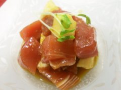マグロと長芋の黄身醤油和え パパが喜ぶ簡単な酒の宵です。 材料 まぐろ(刺身用) 250g 長芋 10㎝ 卵黄 1個 醤油 大1.5 ワサビ 適量 味の素 少々 貝割れ大根 適量 1 マグロも長芋も2㎝角...