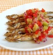 シシャモにトマトと茄子のタルタル 焼いたシシャモに夏野菜のソースをかけて。 材料 (2〜3人分) シシャモ 5〜6尾 ミニトマト 35g 新玉ねぎ 35g 茄子 1本70g 塩 ふたつまみ 粗挽き胡椒...