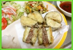 大葉入り茄子のはさみ揚げ天ぷら 合挽き肉